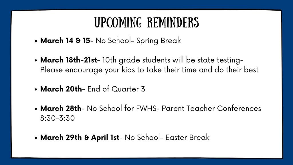 Contact the District Business Manager at (701)766-1438 or via email at fwhs.business@k12.nd.us if you have questions or need assistance with any of these.