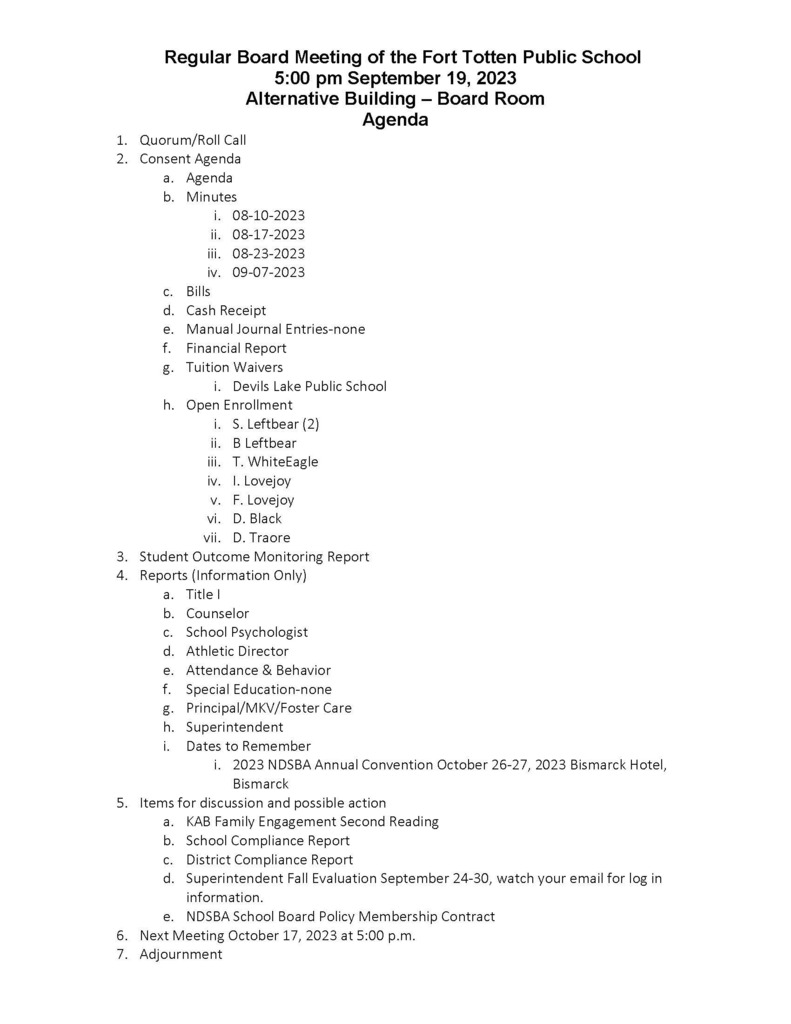 f. Discussion Memorandum of Understanding with BIA and Tate Topa Tribal School